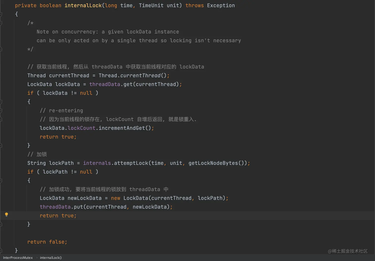 本方法中还包含了锁重入的逻辑,后面也会介绍。