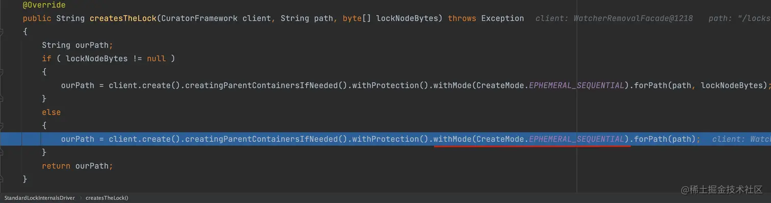 - createsTheLock 创建临时顺序节点