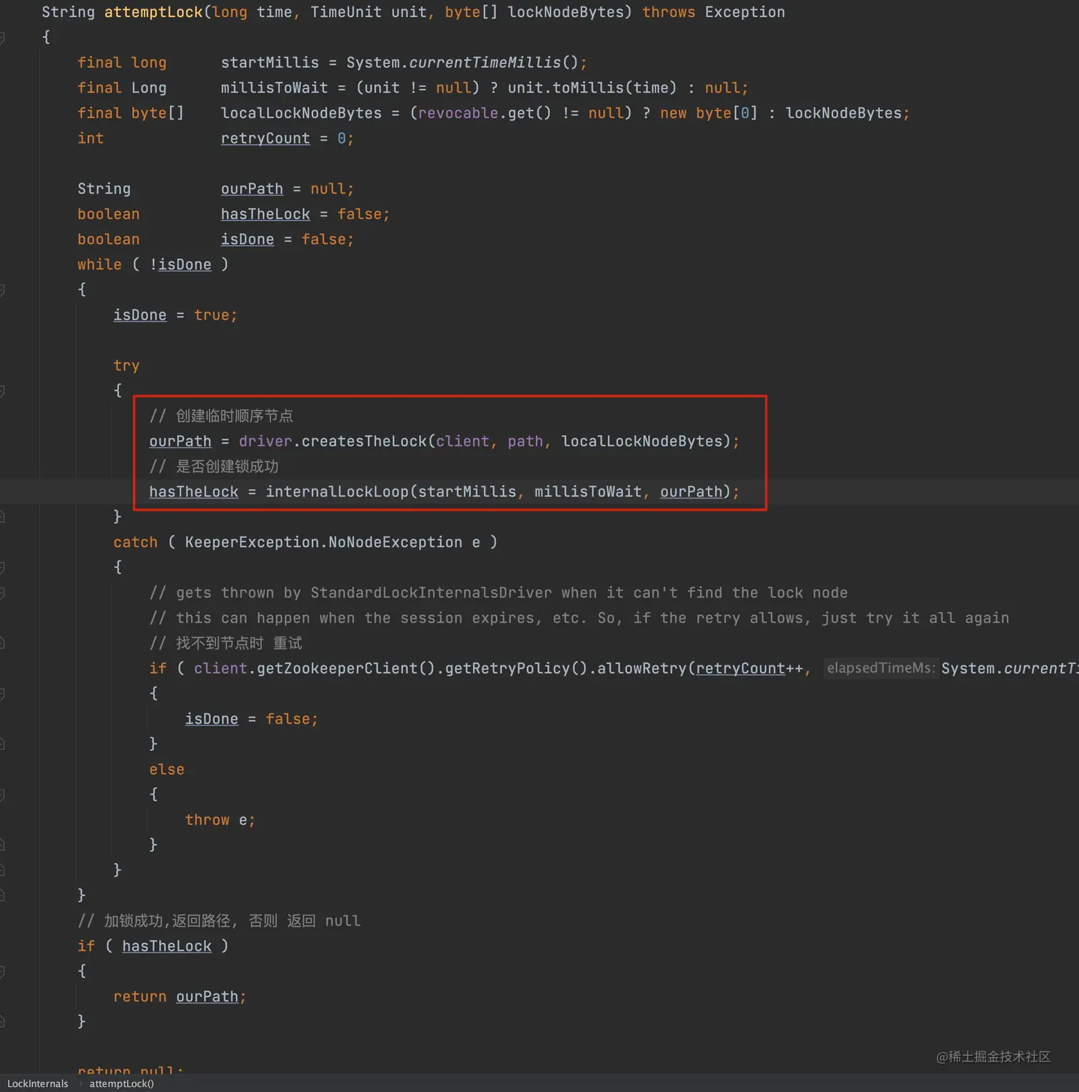 - internalLockLoop 判断是否创建成功