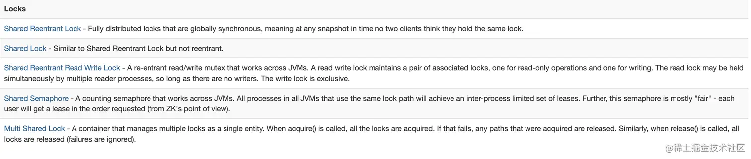 Curator 的锁也分为很多种,本文分析共享可重入锁。