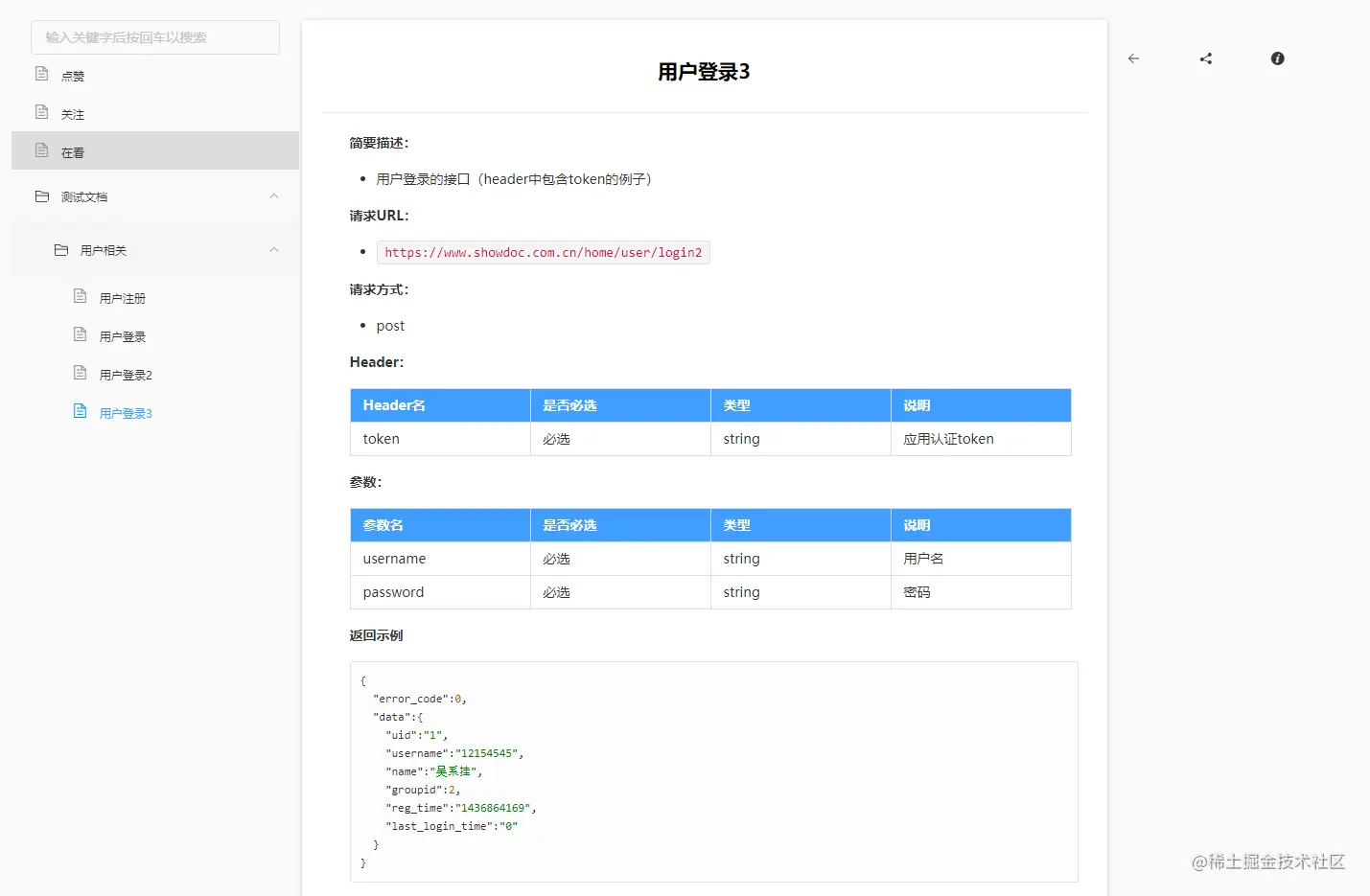 把接口的信息写在注释里也可以自动生成文档到showdoc,但这种我并不太喜欢,主要是侵入性比较强,让代码的阅读性变的比较差,一坨坨看着很不爽。