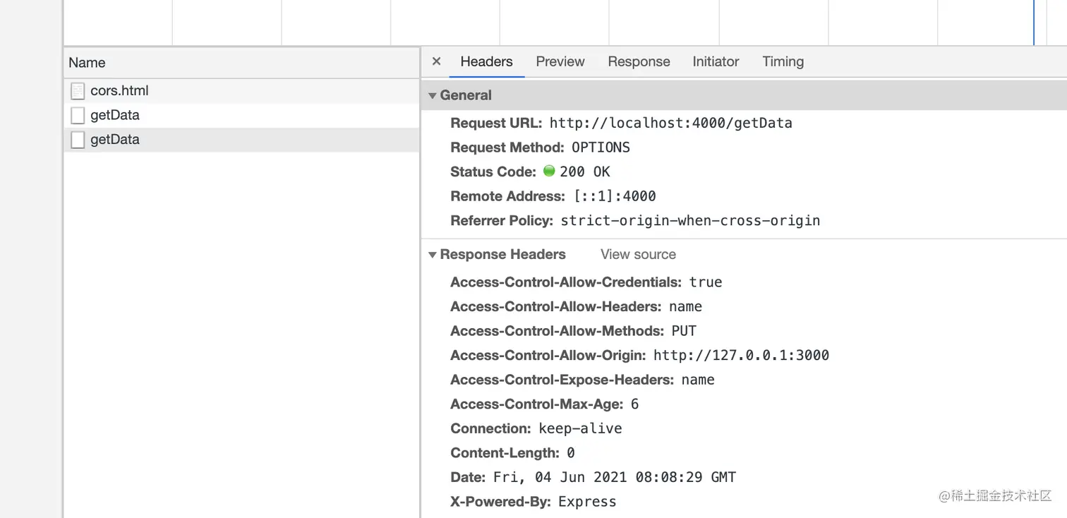 不符合以上条件的请求就是复杂请求,复杂请求的CORS请求,在正式通信之前,会增加一次HTTP查询,称为"预检"请求,该请求是option方法 , 通过该请求来知道服务端是否允许跨域请求。