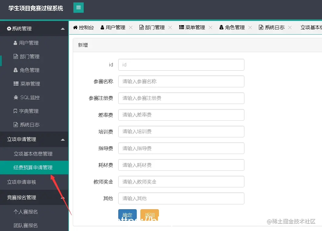 (6)项目竞赛经费申请模块