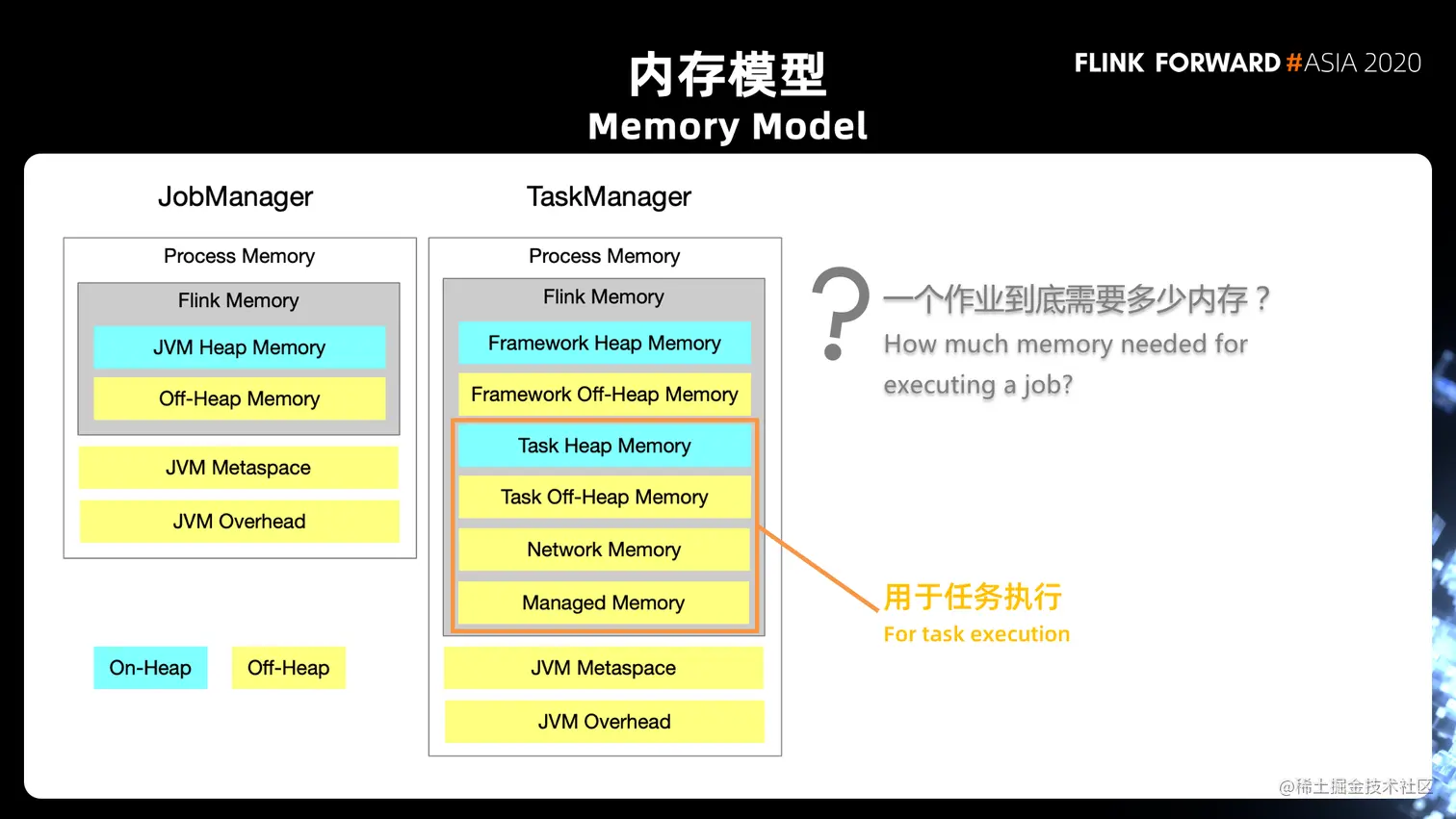 - 第二个问题是:slot 当中到底有哪些使用场景?我们刚才介绍了三种 manage memory 的使用场景。在这个阶段,对于流式作业,可能会出现 Python UDF 以及 Stateful Operator。这个阶段当中我们需要注意的是,这里并不能肯定 State Operator 一定会用到 management memory,因为这跟它的状态类型是相关的。如果它使用了 RocksDB State Operator,是需要使用 manage memory 的;但是如果它使用的是 Heap State Backend,则并不需要。然而,作业在编译的阶段,其实并不知道状态的类型,这里是需要去注意的地方。