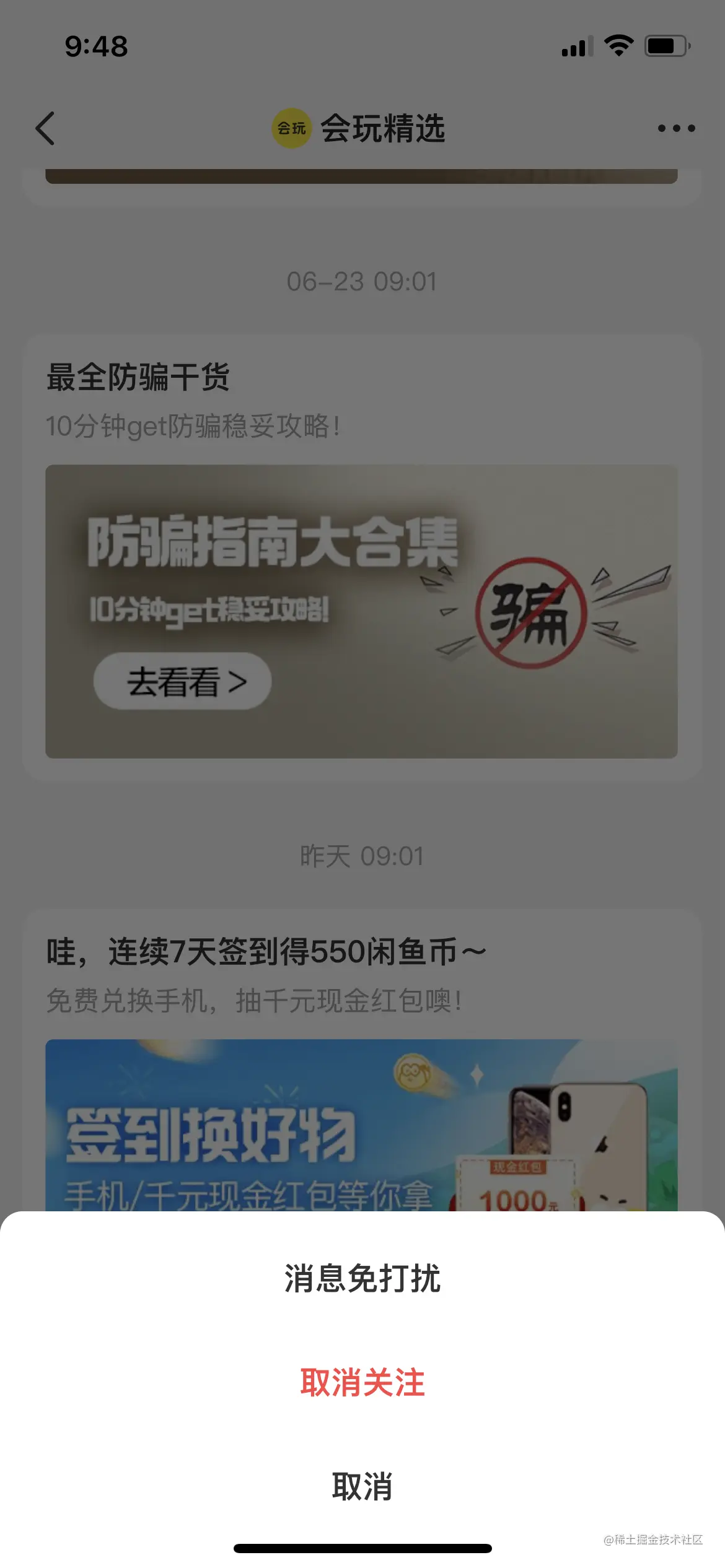 在端侧体验方面,客户端小伙伴将会话模型进行了重构,按照服务号粒度进行了拆分,支持更细粒度的运营订阅服务,用户可以随时取关或者静音某个服务号的推送,这样的设计方便后续我们更灵活的组装众多的服务号会话类型。