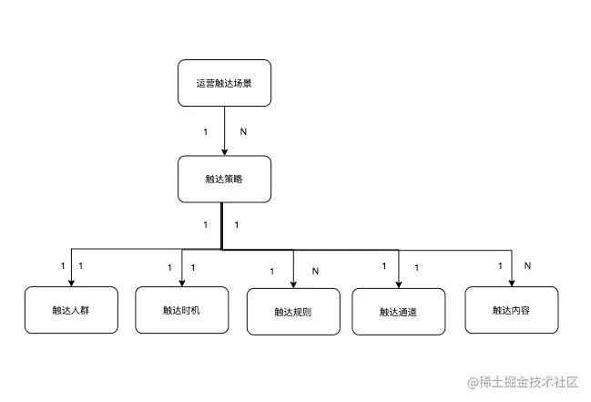 说完了HermesX对用户侧的改进后,让我们也来讨论一下HermesX的另外一个”用户“-业务小伙伴们。如何帮助业务小伙伴们提升策略的配置效率,洞察更多的机会,是技术平台义不容辞的责任。HermesX天然的基于触达五要素的设计,从管理后台角度,也按照了自然思维配置触达策略和触达内容,如下图: