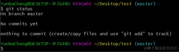 此时还没有将文件添加到暂存区中,所有会显示 nothing to commit ,代表没有任何的文件。