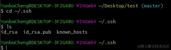 cd ~/.ssh :此命令是查看是否配置过密钥 (如果不报错说明配置过,如果报错说明没有配置过)