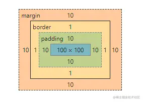 完整的 CSS 盒模型应用于块级盒子,内联盒子只使用盒模型中定义的部分内容。模型定义了盒的每个部分 —— margin, border, padding, content —— 合在一起就可以创建我们在页面上看到的内容。