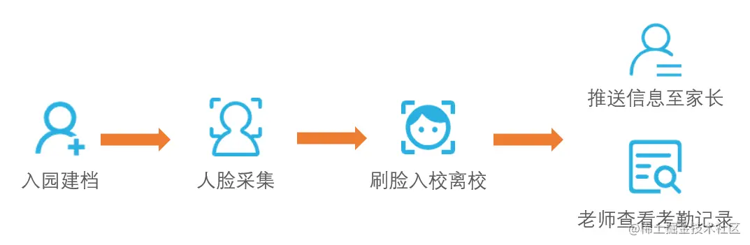 - 人脸考勤:进出校门时人脸识别摄像头可对其抓拍,并将抓拍到的图片与所有录入照片进行匹配识别,实现智能入园考勤。