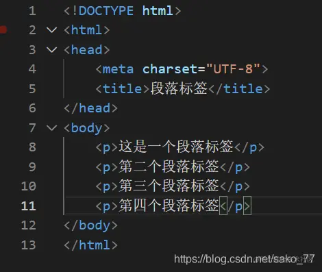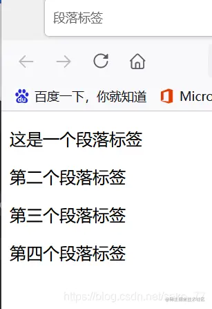 段落是通过<p>标签定义的,p标签之间不会相互共用一行,会独占一行或者多行的空间。