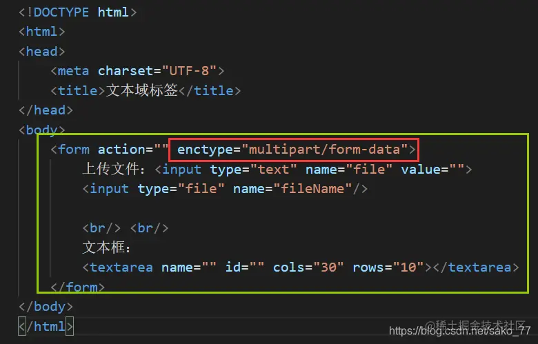 使用文件域上传文件时,一定不要忘记设置form表单信息提交编码方式为(enctype=“multiple/form-data”)