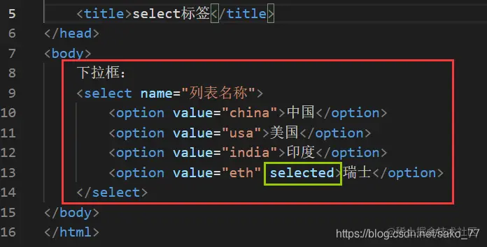 selected 直接写出,表示默认选中某一项。