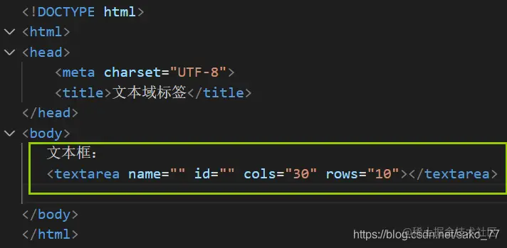 文本框<textarea name="" id="" cols="30" rows="10"></textarea>