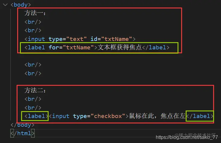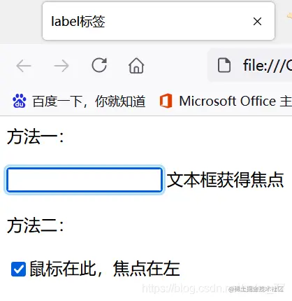 Lable标签,可以在你点击文本时,让label指向的表单标签获得焦点。