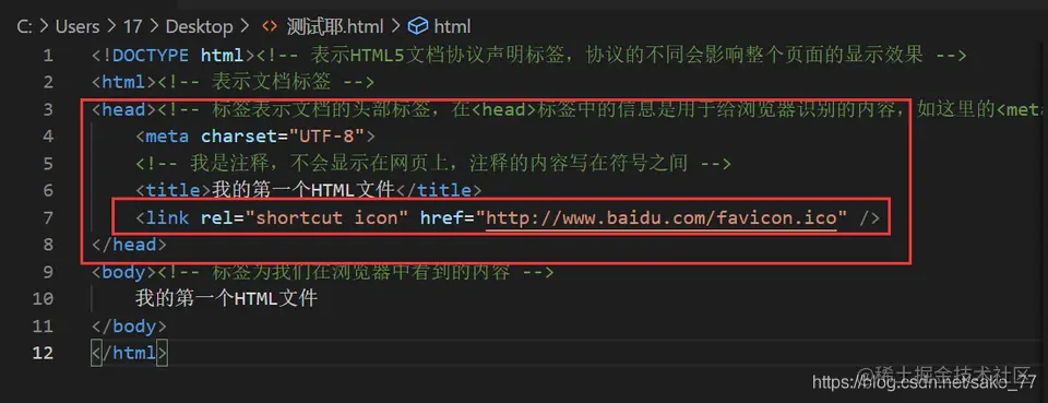 <link rel="shortcut icon" href="<http://www.baidu.com/favicon.ico>" />