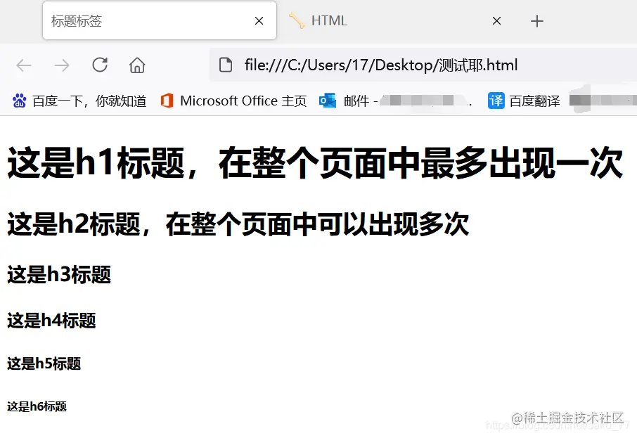 标题标签用<h1> - <h6> 来表示,其中<h1> 定义最大的标题。<h6> 定义最小的标题。
