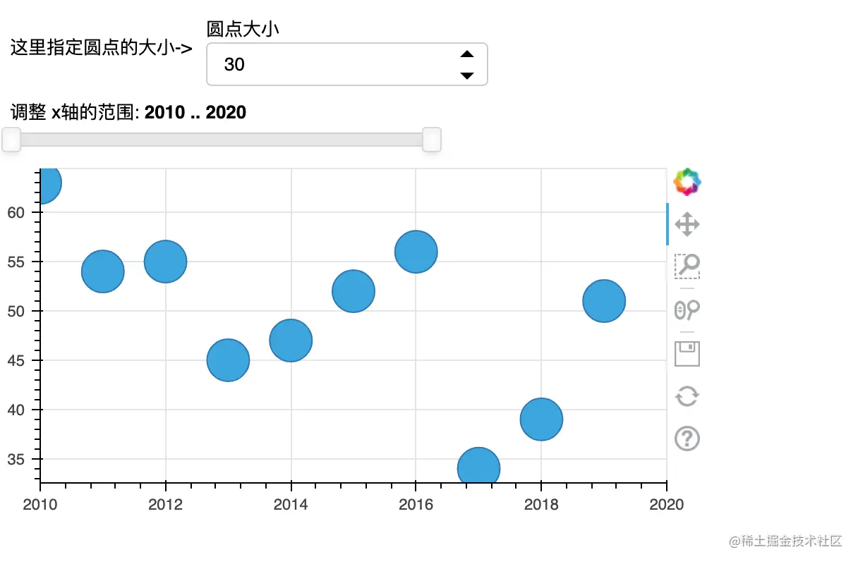 来个复杂点的,下面是个散点图,可以通过设置改变圆点大小和轴距缩放。