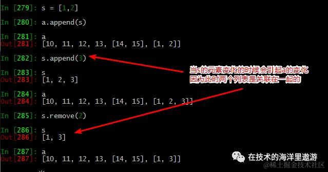 千万要记住,列表是动态变化的,如果两个列表是关联的,一个列表的变化会引起另一个列表的变化