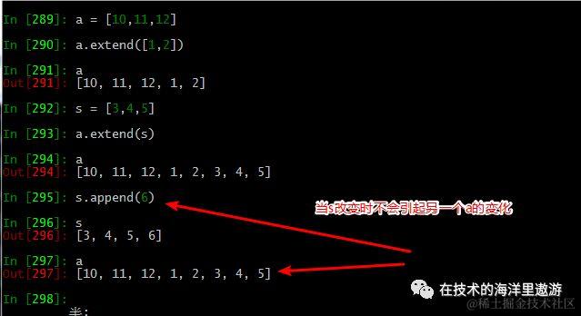 (2)extend()将另个序列的元素依次添加到列表的最后