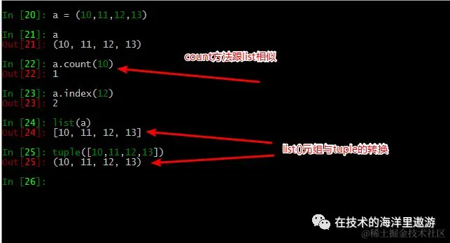 由于元组是不可变的,所以他只支持。count(),index()方法