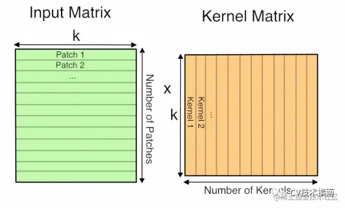 这里的“k”是每个补丁和内核中的值数,因此它是内核宽度*内核高度”深度。结果矩阵是“patches数”列高,按“kernels数”行宽计算。这个矩阵实际上被随后的操作视为一个三维数组,以内核维数作为深度,然后根据它们在输入图像中的原始位置将斑块分割回行和列。