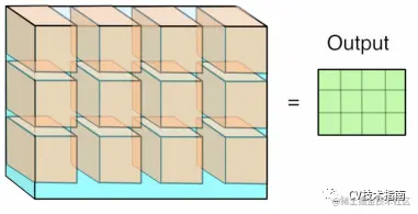 每个卷积核都是一个三维数组,其深度与输入图像相同,但其宽度和高度要小得多,通常就像7×7一样。为了产生结果,卷积核将应用到输入图像的点网格。在应用它的每个点,所有相应的输入值和权重相乘,然后在该点相加产生单个输出值。以下是视觉效果: