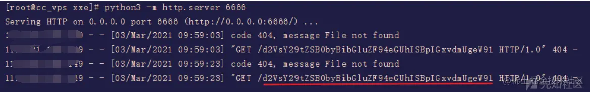 然后再用python再开启一个端口,接收读取的目标服务器的数据,这里监听的是上面文件中写的6666端口