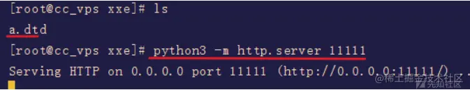 这里需要一个VPS,VPS中放入一个DTD的文件,并在该文件所在目录开启一个web服务,我这里用的是python开启的