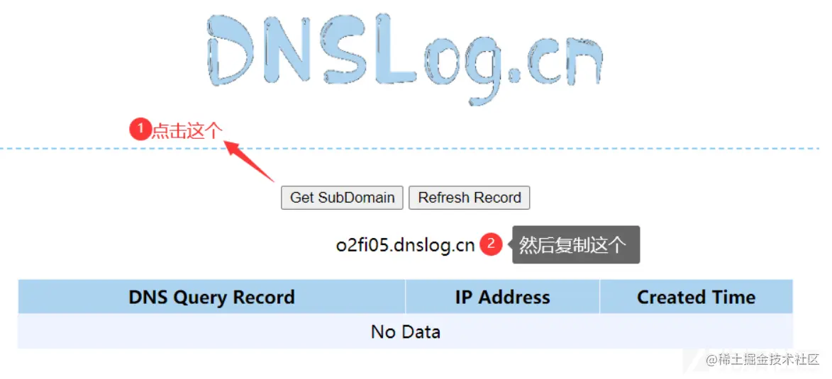 (1)Get SubDomain的意思是获取子域名,这里点击完就给我们一个三级域名。复制完后,打开新网页并粘贴在url上,访问