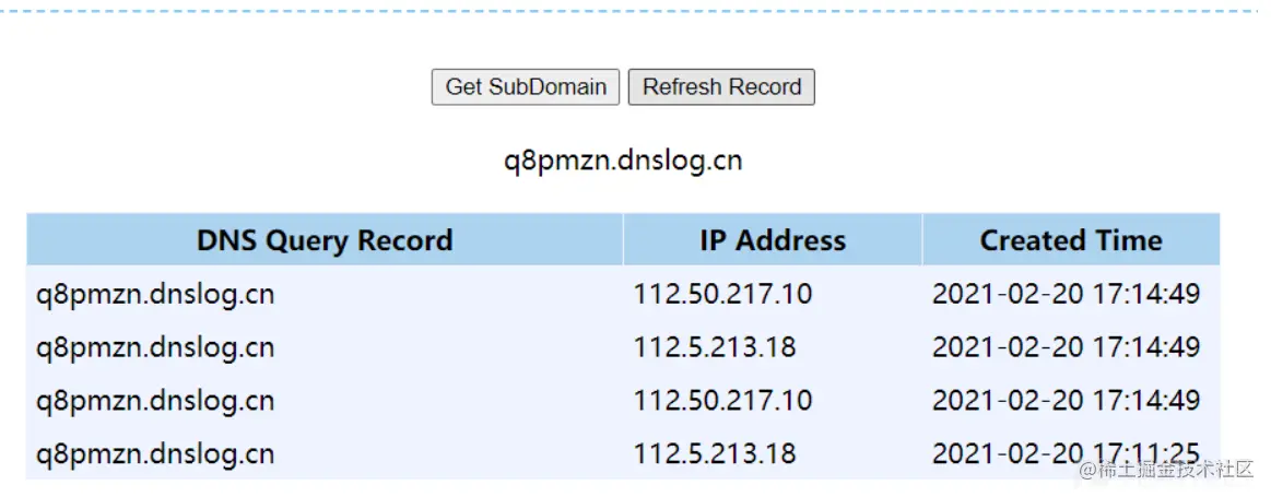 然后去dnslog平台上查看,看到接收到了信息,说明漏洞真的存在