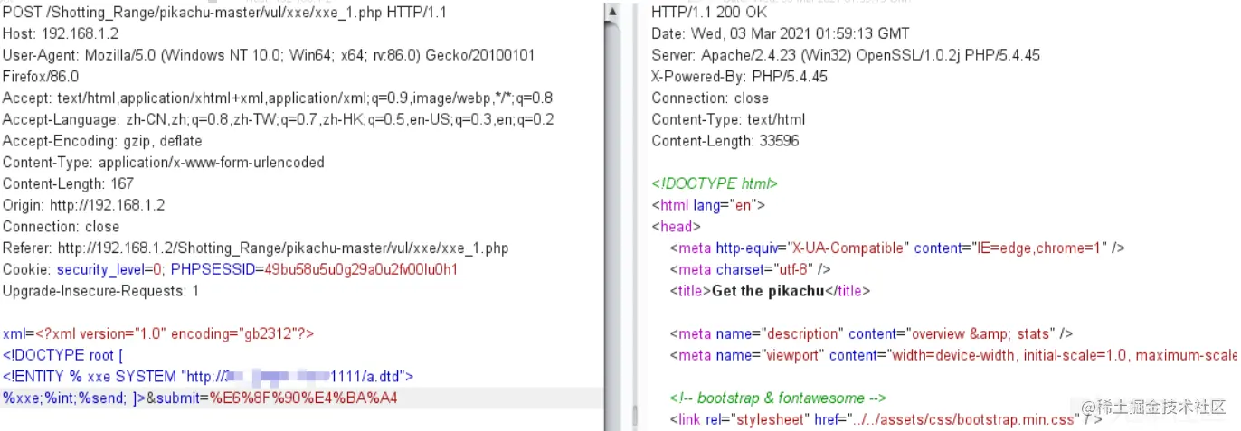 XXE漏洞全称(X ML External Entity Injection)即X ML外部实体注入漏洞,XXE漏洞发生在应用程序解析X ML输入时,没有禁止外部实体的加载(下面会介绍),导致可加载恶意外部文件,造成文件读取、命令执行、内网端口扫描、攻击内网网站、发起DOS攻击等危害。
