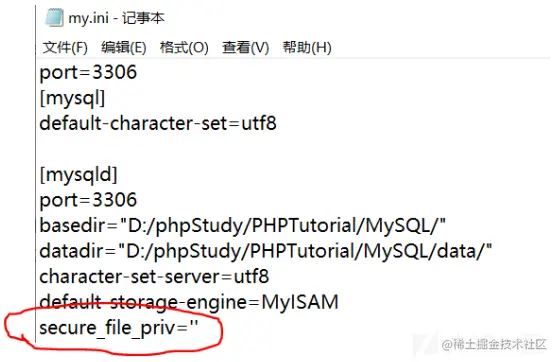 secure_file_priv设置通过设置my.ini来配置,不能通过SQL语言来修改,因为它是只读变量,secure_file_priv设置具体看这里: