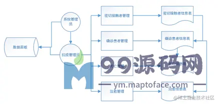 抗疫管理员登录后可以进行确诊患者管理、密切接触者管理、死亡管理、治愈管理,同时可以看到数据面板的数据变化与动态图。系统管理员除了拥有抗疫管理者的权限,还可以对抗疫管理员进行管理。