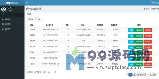 确诊患者管理界面