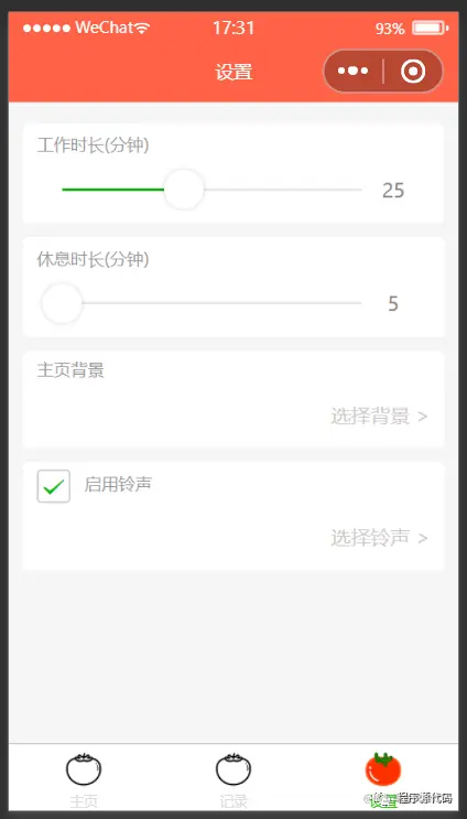 正文:时间管理小程序番茄工作法是简单易行的时间管理方法。使用番茄工作法,选择一个待完成的任务,将番茄时间设为25分钟,专注工作,中途不允许做任何与该任务无关的事,直到番茄时钟响起,然后进行短暂休息一下(5分钟就行),然后再开始下一个番茄。\