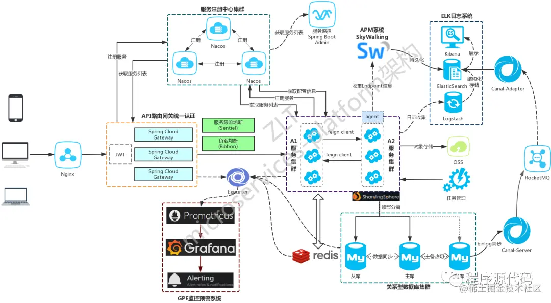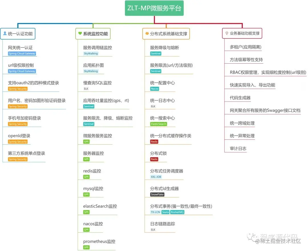 正文:微服务 基于SpringBoot2.x、SpringCloud和SpringCloudAlibaba并采用前后端分离的企业级微服务多租户系统架构。并引入组件化的思想实现高内聚低耦合并且高度可配置化,适合学习和企业中使用。真正实现了基于RBAC、jwt和oauth2的无状态统一权限认证的解决方案,面向互联网设计同时适合B端和C端用户,支持CI/CD多环境部署,并提供应用管理方便第三方系统接入;同时还集合各种微服务治理功能和监控功能。模块包括:企业级的认证系统、开发平台、应用监控、慢sql监控、统一日志、单点登录、Redis分布式高速缓存、配置中心、分布式任务调度、接口文档、代码生成等等。