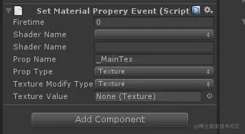 可获取和设置值包括colorValue、floatValue、vectorValue 和 textureValue,那么设计更改材质属性事件也可按此来设计。