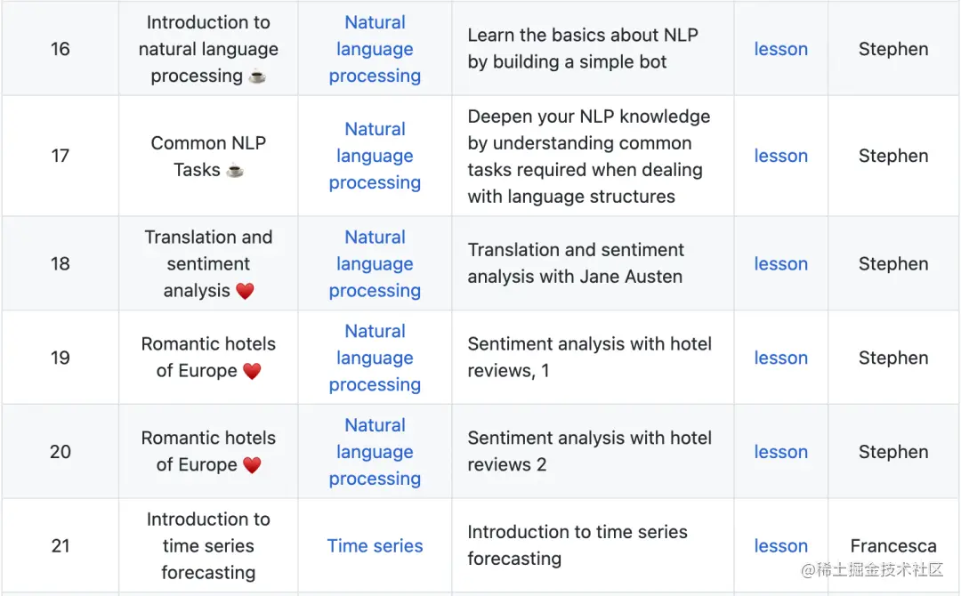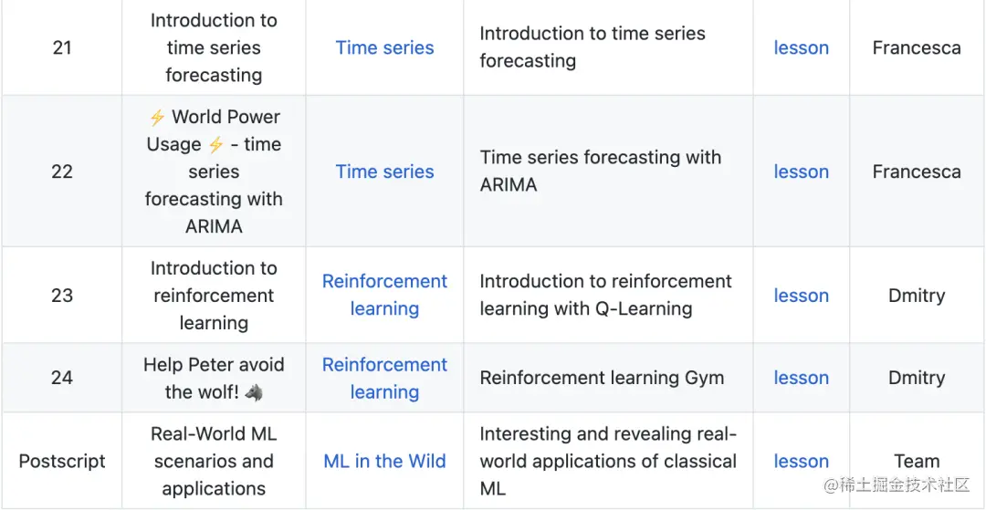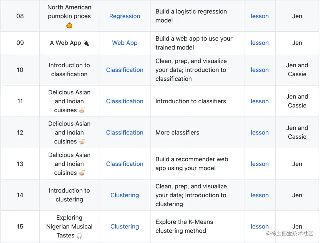 ML-For-Beginners 是微软开源的机器学习入门教程,总共有 25 节课,时间周期为 12 周,课程主要使用 Scikit-learn 库。学习这门课程的同时也能了解世界各地的文化,因为课程里面的技术会被应用到来自世界很多地区的数据。