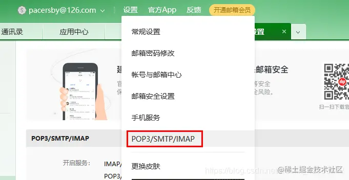 2、打开 设置—POP3/SMTP/IMAP配置界面