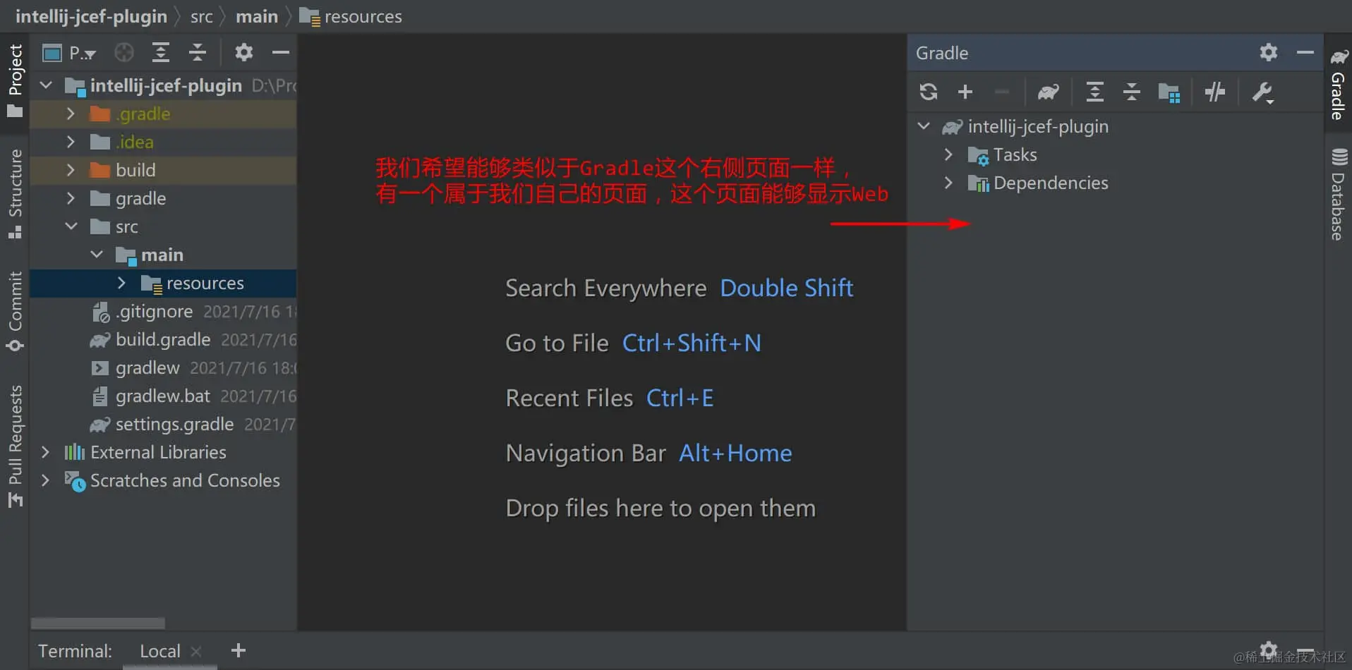 首先说明我们的目的,就是希望能够类似于gradle、maven插件一样,能够在IDEA的侧边有一个显示我们Web页面的地方: