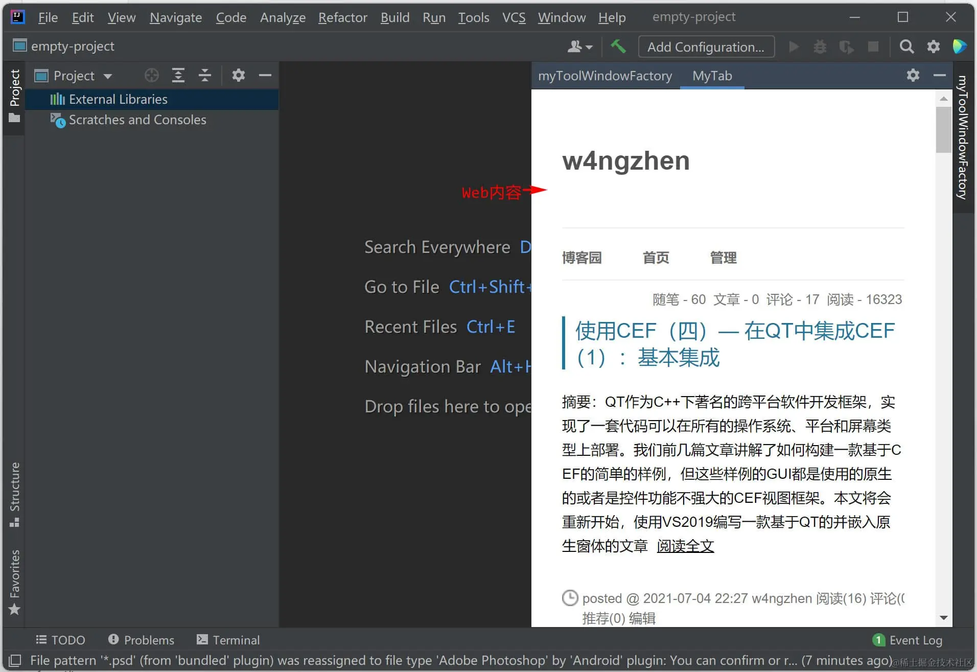 基础ToolWindow开发 :simple ToolWindow Content · w4ngzhen/intellij-jcef-plugin@bf2ca8e (github.com)