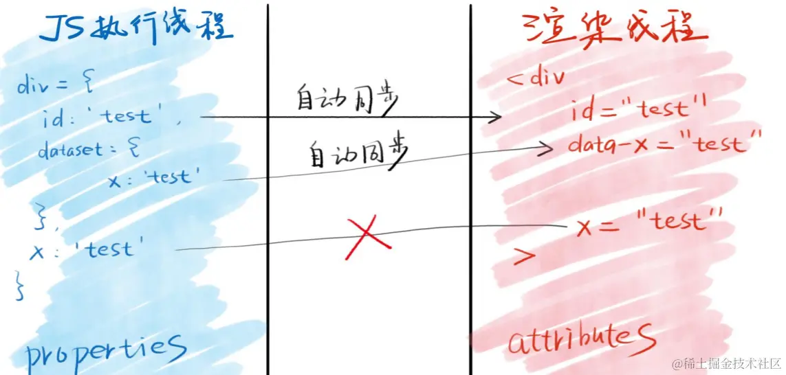 如果想要修改自定义属性,又想要自动同步,就要把这个属性挂在dataset上