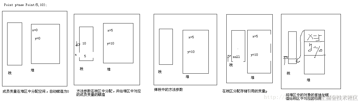 2)))调用对应构造器,构造器的调用也是一一映射,执行构造器的代码。将实参给构造器中的形参,将形参压入栈中
