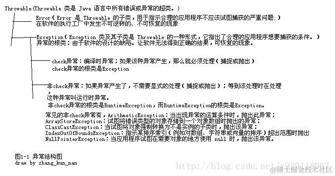 1))运行时异常,可以在没产生异常时,在代码中可以进行捕获。