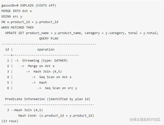 MERGE INTO转化成JOIN将两个表进行关联处理,关联条件就是ON后指定的条件。