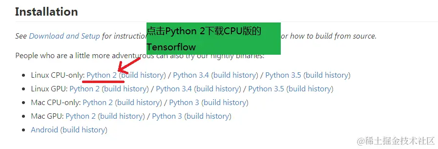 下载Linux CPU-only:Python2 如下图,后面步骤3.1会用到此文件