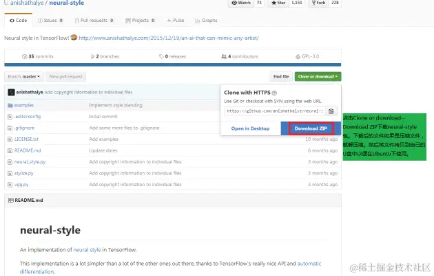 再在地址栏输入:https://github.com/anishathalye/neural-style