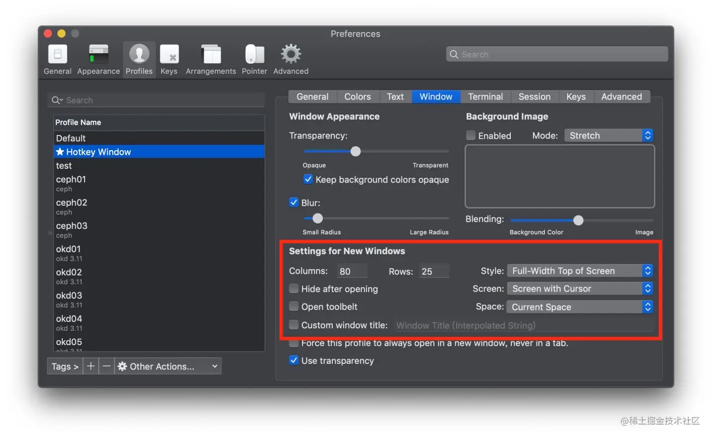 - Full-Width Top of Screen : 这个很好理解,让终端显示在屏幕顶部,并占满整个宽度。