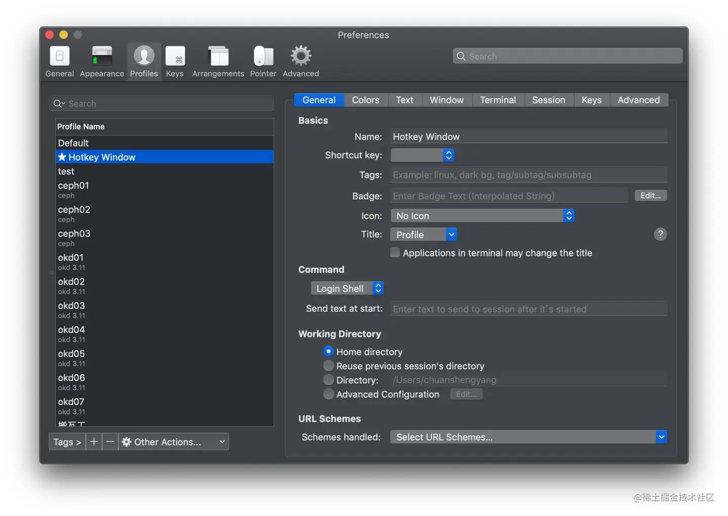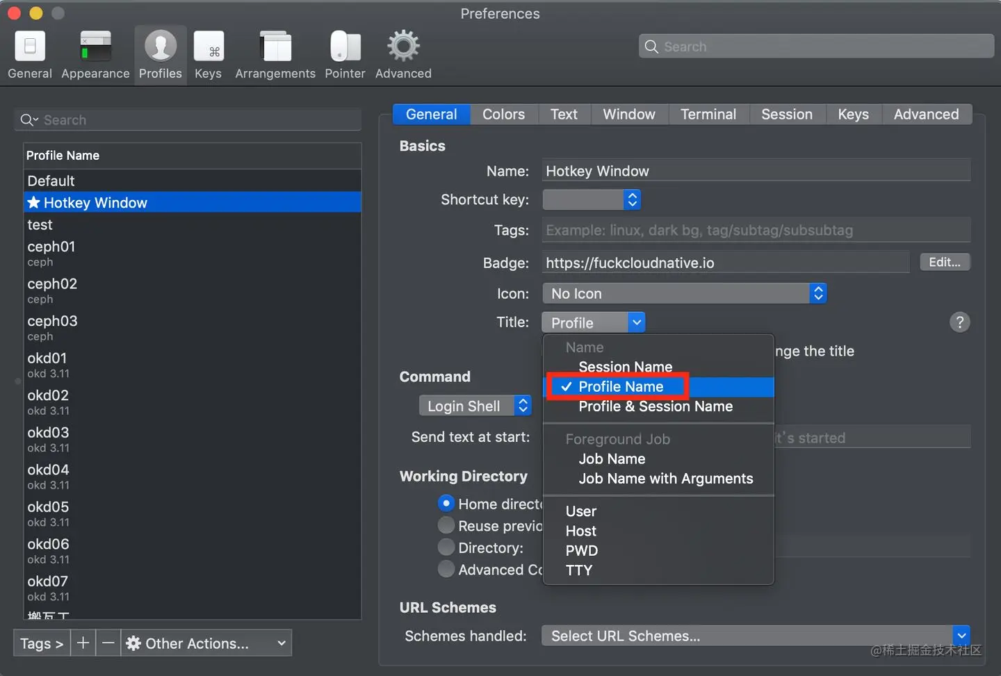 首先打开 Preperence → Profiles,新建一个 Profiles,取名 HotKey Window(这个名字可以随便取)。